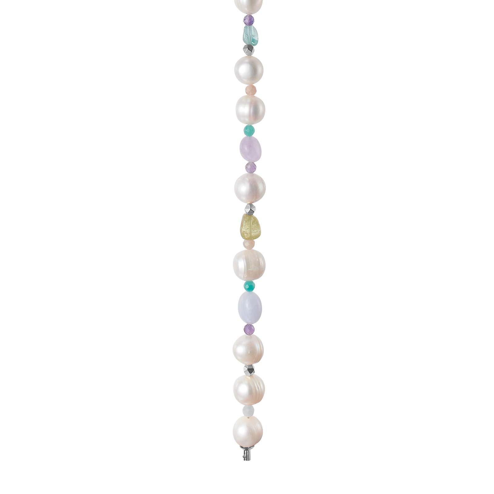 Wunderschöne feminine System-Steinkette mit Apatit, Peridot, Amethyst, Amazonit, Sonnenstein und Süßwasserzuchtperlen, die mit den vielzähligen System-Verschlüssen von Heide Heinzendorff kombiniert wird. Darf es heute ein Statement-Verschluss sein, der vorne getragen wird? Oder lieber ein dezenter Verschluss, der hinten getragen wird? Die Länge der Kette beträgt 45 cm, die Steine haben einen Durchmesser von bis zu 12 mm. Das Endstück selbst ist aus oxidiertem Sterlingsilber gefertigt.