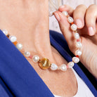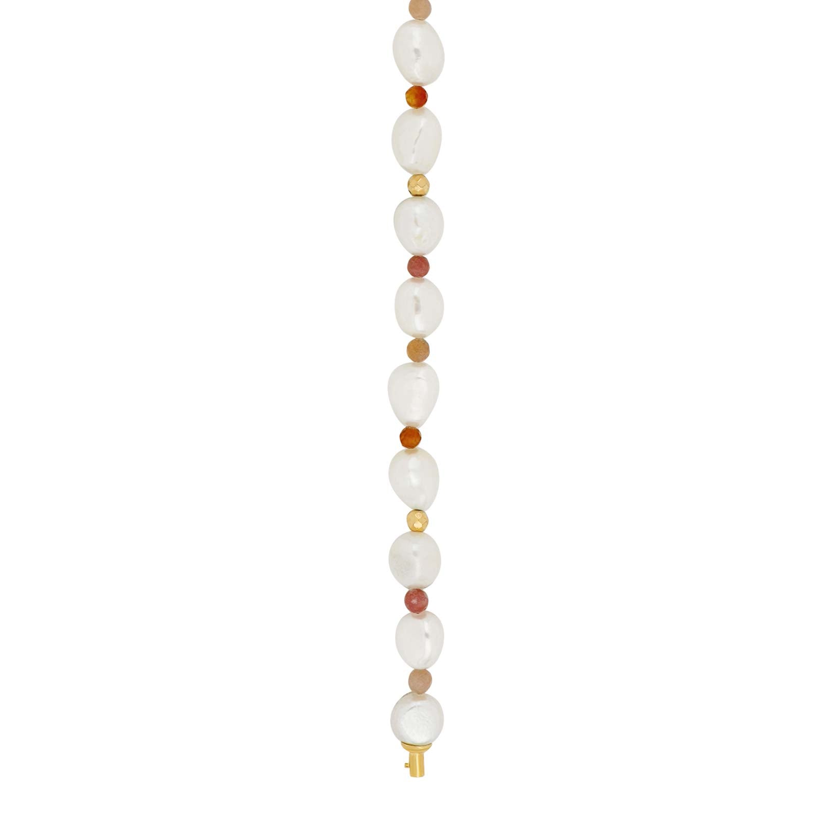 Liebst du einen vollen und voluminösen Look? Diese elegante Kette mit abwechselnden Edelsteinen und Süßwasserperlen macht deinen Look zu etwas ganz Besonderem. Trage sie zusammen mit einem schönen, vergoldeten Kugel-Verschluss.